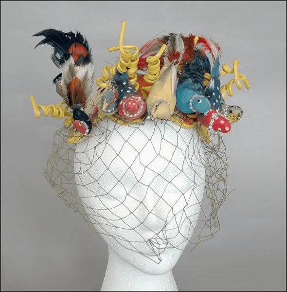 By the early 1940s, he had moved away from the traditional style and towards a more surrealistic one. Benjamin skillfully combined his sense of humor and style in original hats.
